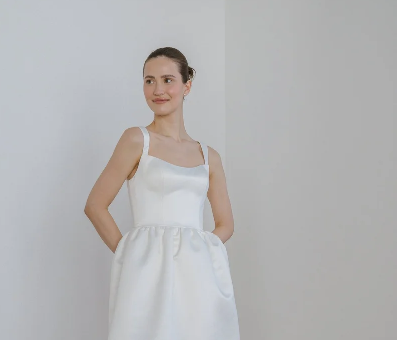 A limited collection of midi-length customizable gowns perfect for City Hall!